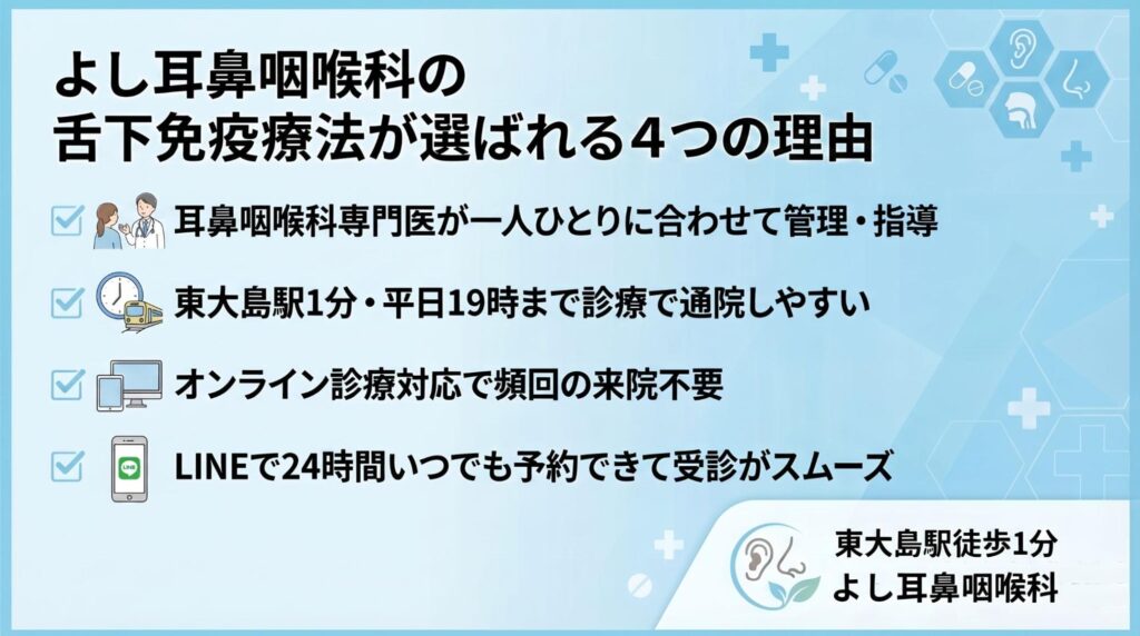 舌下免疫療法を始めるならよし耳鼻科へ