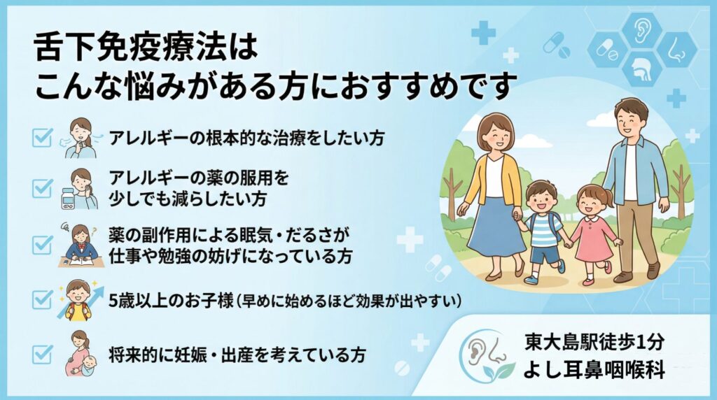 舌下免疫療法は、こんな方におすすめです。